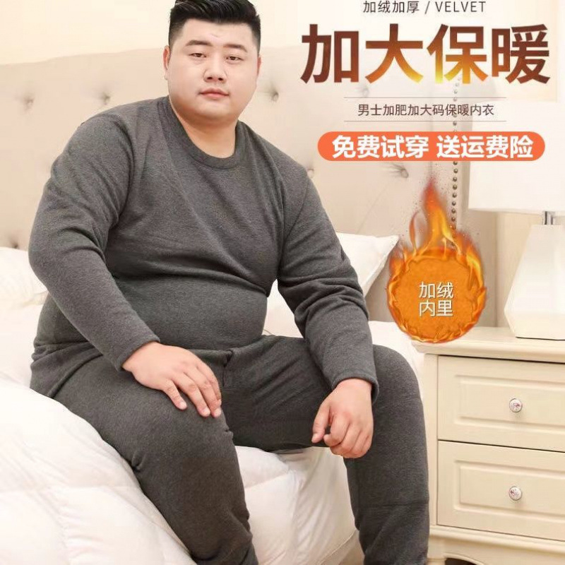超大サイズ200斤の太った人が太って保温下着の男性スーツにベルベットをつけて発熱した秋衣秋ズボンを厚くする