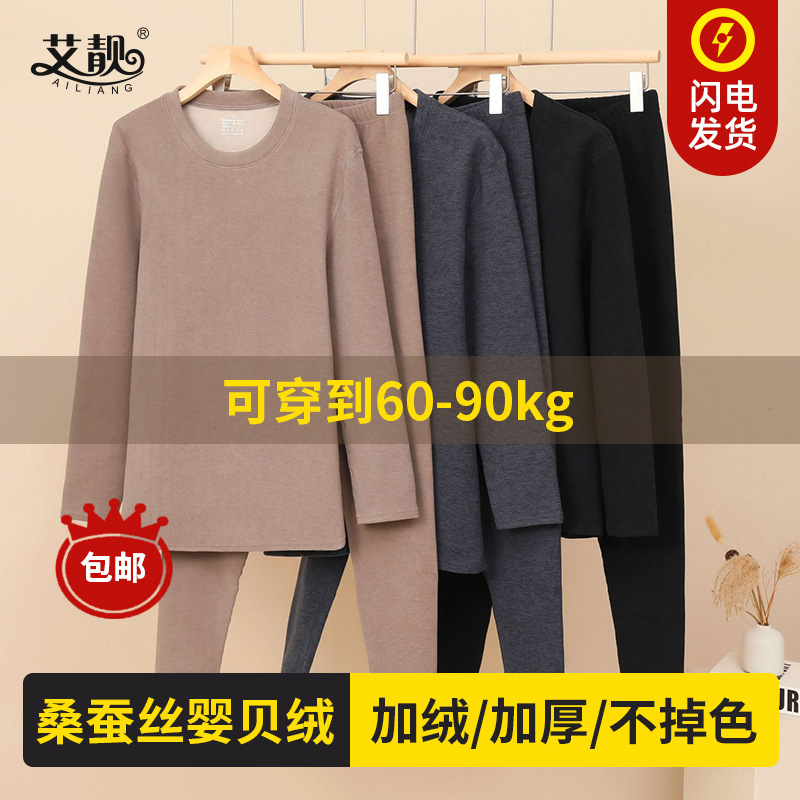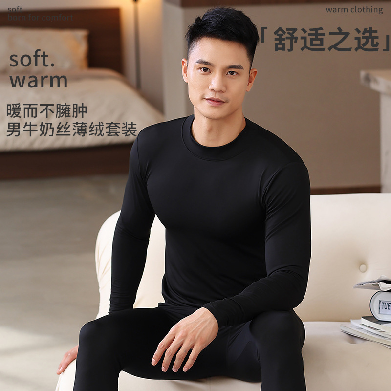 シュルダン2024男性カシミヤシルク丸首セット秋衣ズボン厚いベルベット保温下着16551
