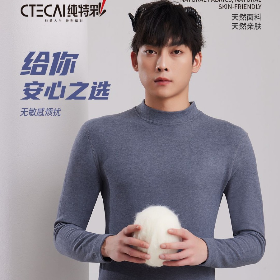 2024秋冬新作純特彩カシミヤシルク男性中襟セット保温下着セット