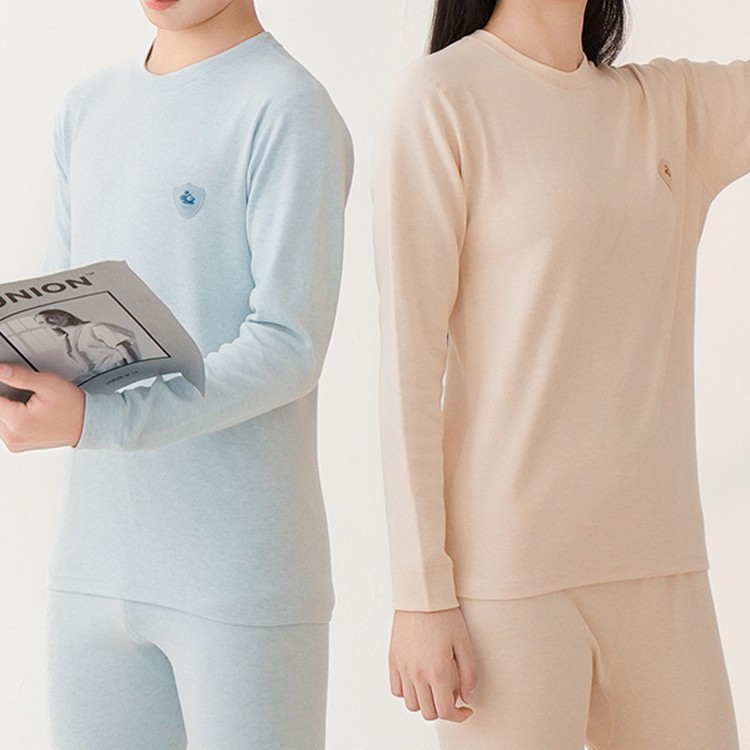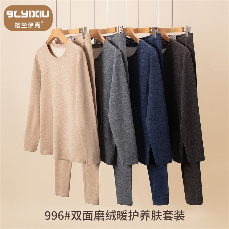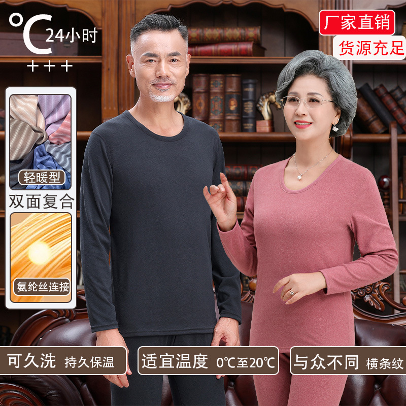 2023年両面デコルテ恒温37度中高年男性女性丸首舒綿綿毛保温服秋衣秋ズボン