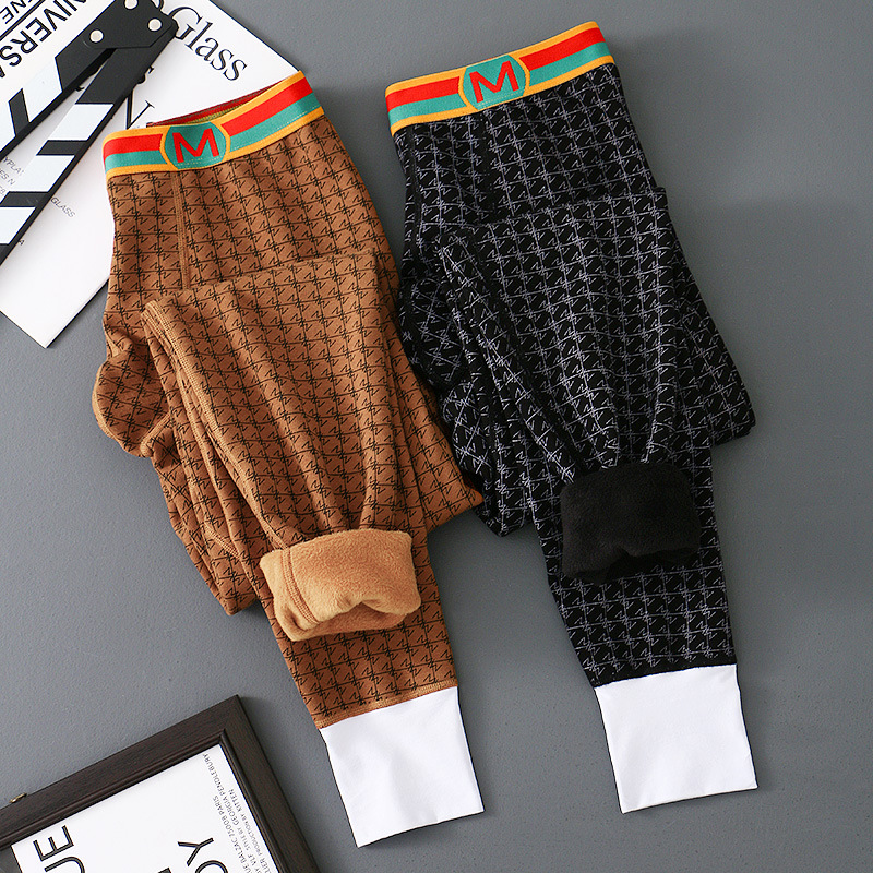 厂家直销产地货源山羊绒裤秋冬男士打底裤纯色护肚护腰保暖裤批发