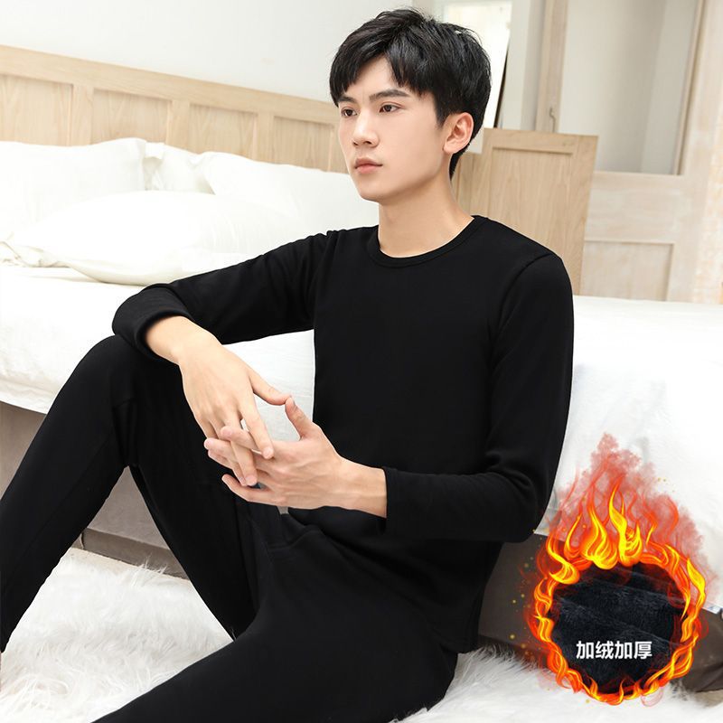 1つ買うと1つ無料 無地メンズ秋服上下セット ユース向け綿毛衣加厚裏起毛保温下着
