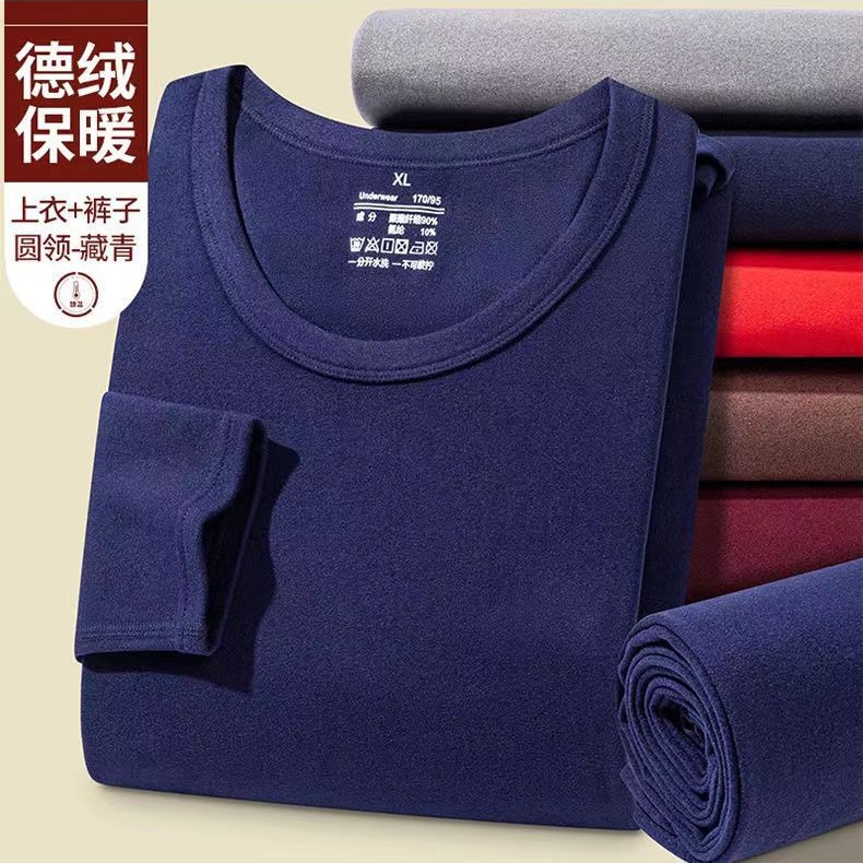 メーカー卸売り新商品高級品質男性モデル徳絨毛セット丸首保温下着純色恒温高級保温