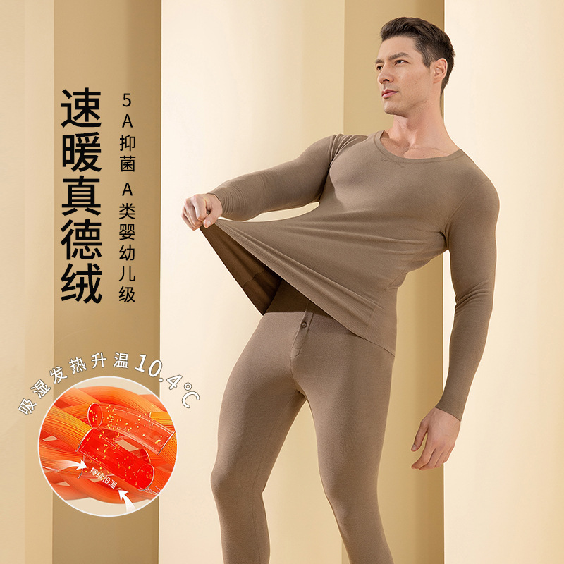 ヒアルロン酸潤肌保温長袖ズボン男性美肌服セット保温下着発熱底秋衣秋ズボン