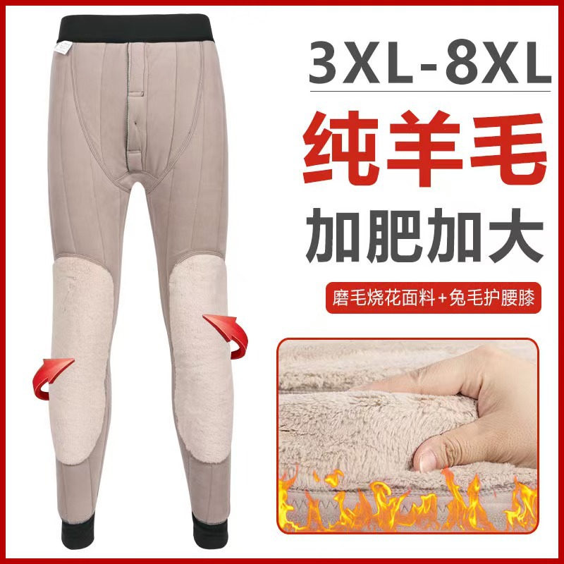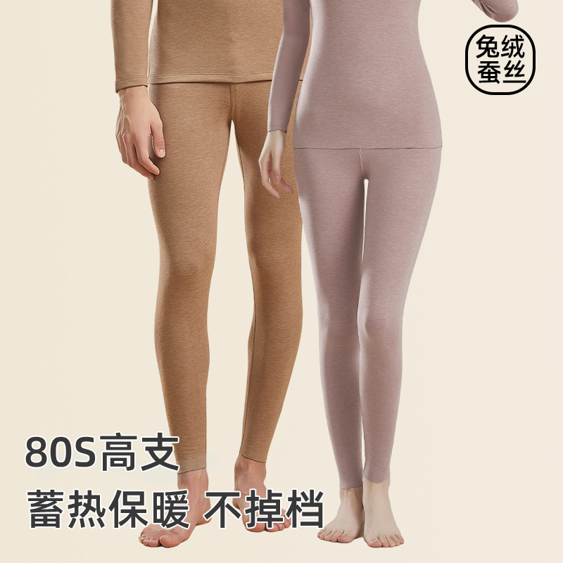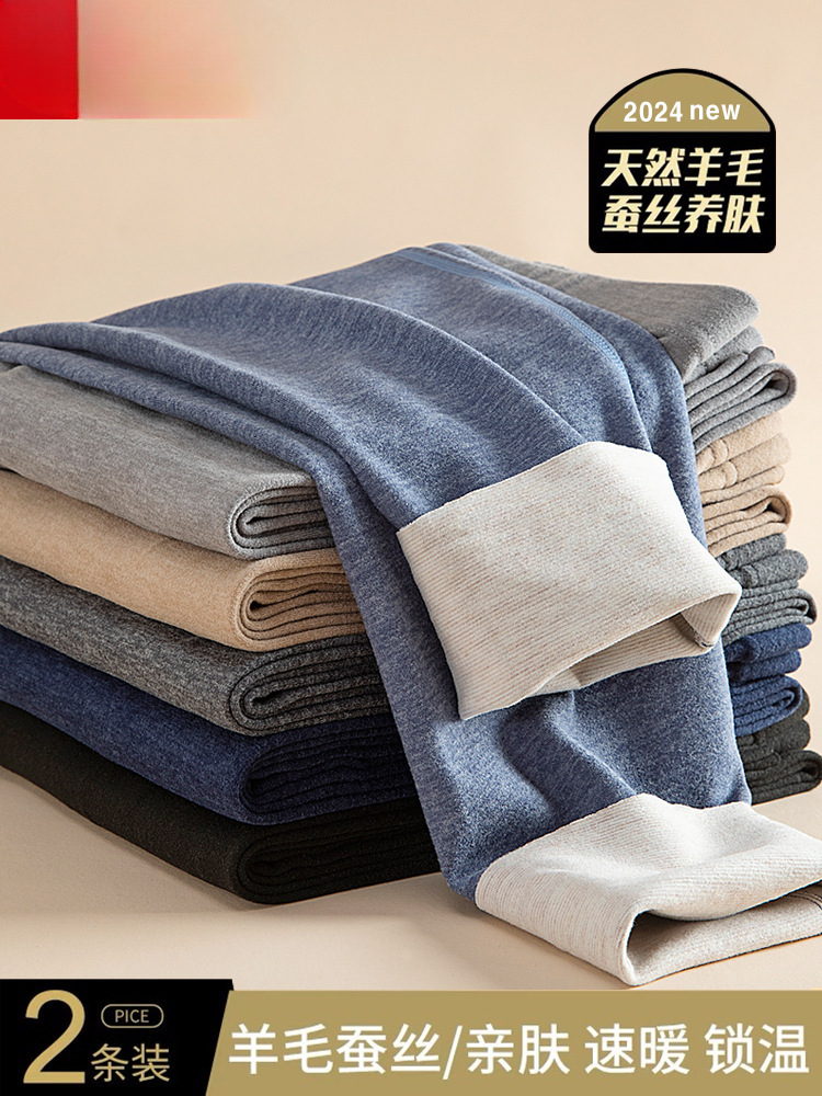 秋冬メンズ秋裤、レディースハイウエストレギンス、ウールシルク薄手保温パンツ、起毛綿毛裏地付きパンツ
