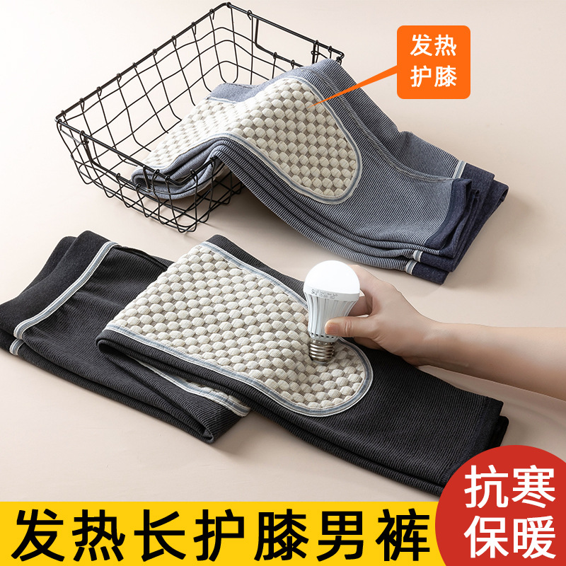 厚手の高腰シルク膝保護保温ズボン男性冬の発熱防寒ウール秋ズボンとベルベットのズボン