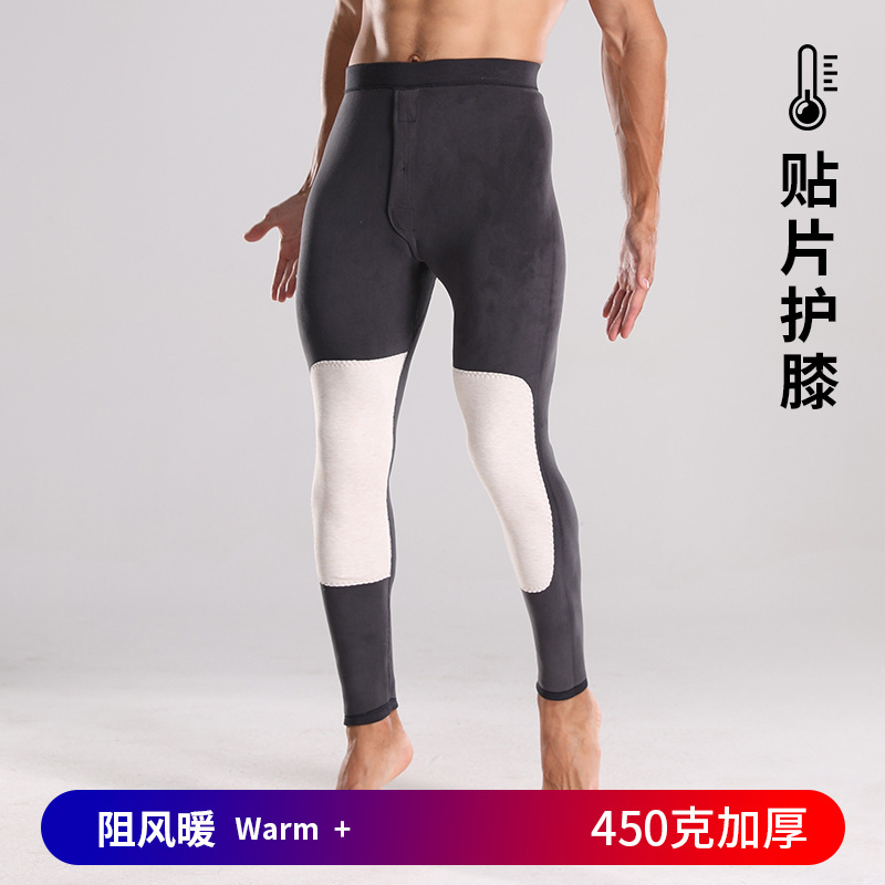 シルクデロン保温パンツ メンズ 大きなパッチ付き膝当て インナー単品 秋冬用スリムフィット 防寒膝当て付き保温パンツ