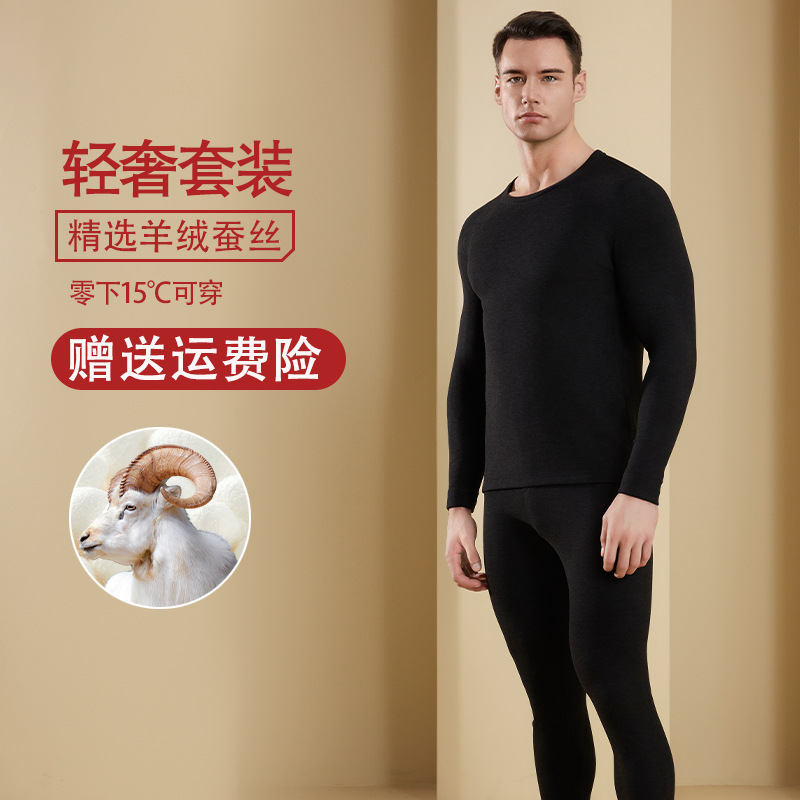 男性保温下着セット秋冬ベルベット厚手秋衣秋ズボン新カシミヤシルク抗菌下着
