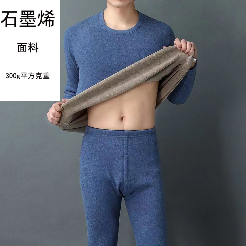 秋冬グラフェン発熱保温下着セット男性秋衣秋ズボンとベルベットの厚い保温上着ズボン
