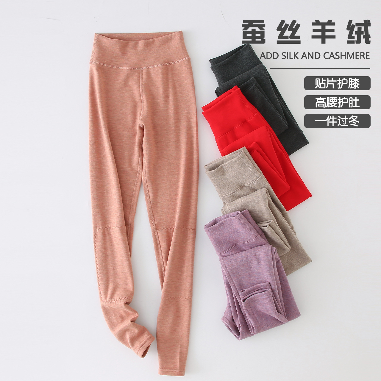 女性のシルクのカシミヤのパッチの高腰の保温ズボンの秋冬は保温して快適です。