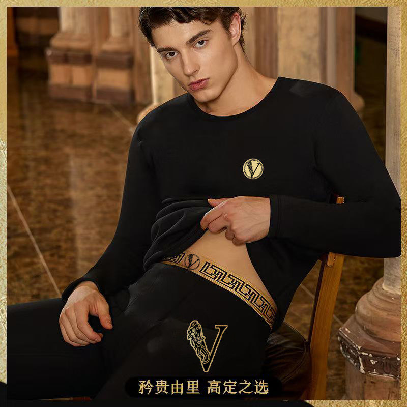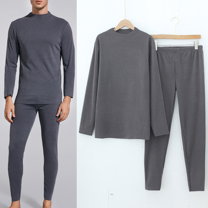 卸売り半高襟ウールシルク徳パイル防寒自己発熱保温下着セット男性秋衣秋ズボンベルベット