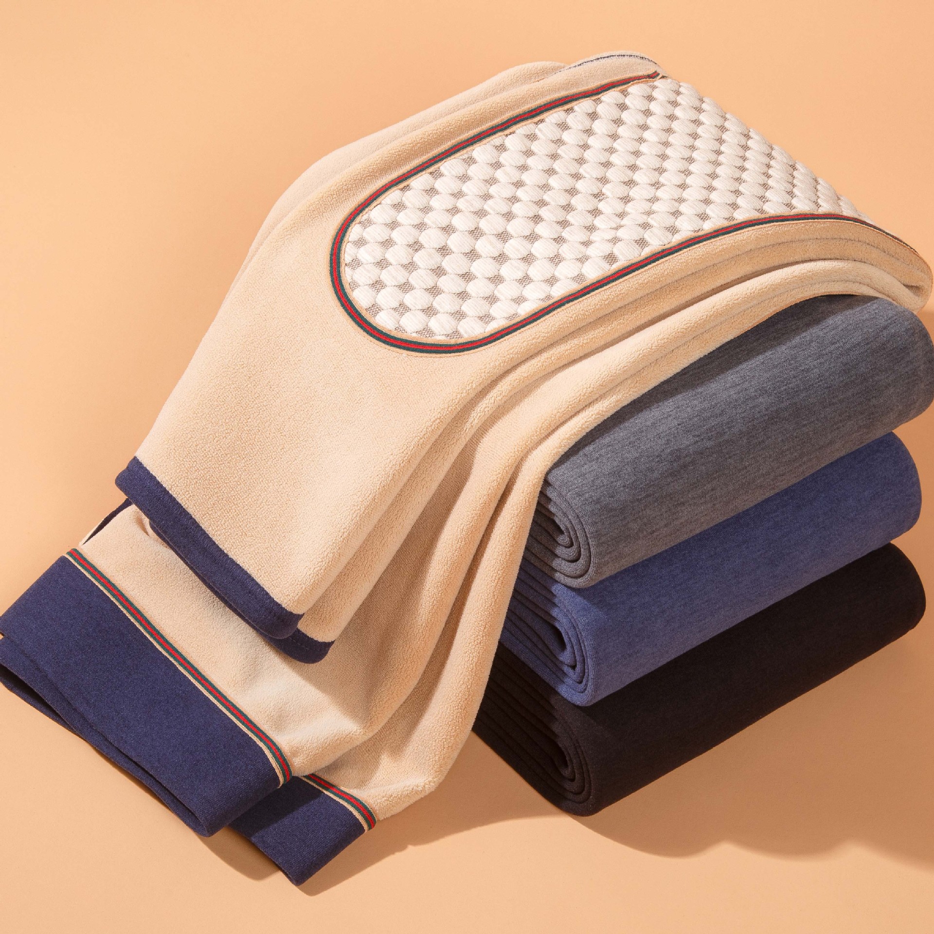 【キャメルケース保温パンツ】ベルベット厚手膝当てパンツ男性レギンス冬保温一体パイル弾力秋ズボン