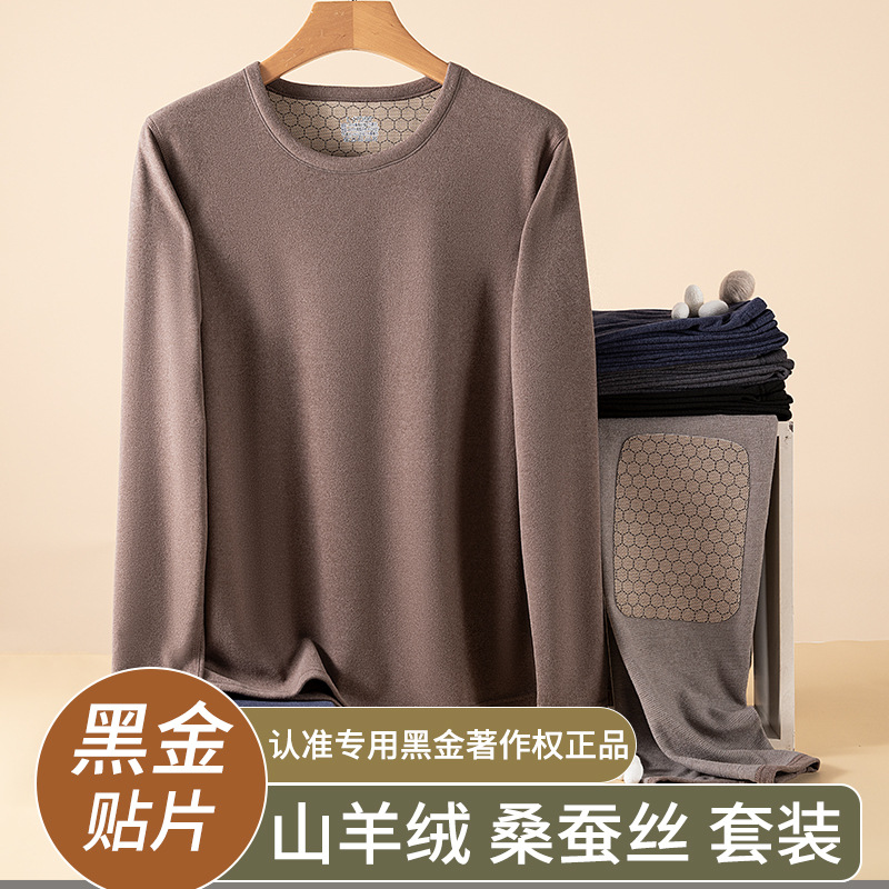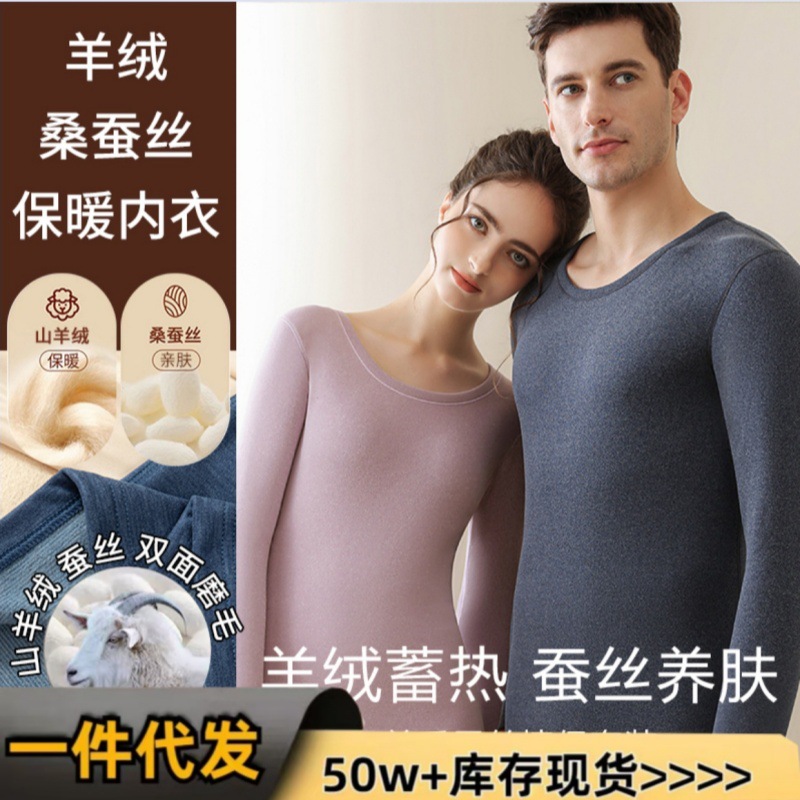 カシミヤシルク保温下着男性女性秋衣秋ズボンセットにベルベットを加えて秋冬のシャツを厚くして卸売りを代行する