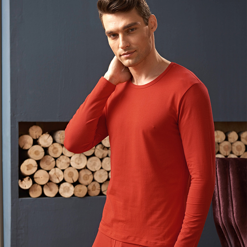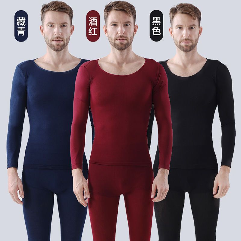 22188秋冬大紅男性セットヒアルロン酸保温超薄長袖静電防止無痕底美肌服