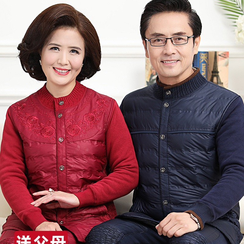 中高年ダウン保温下着女性ベルベット厚手スーツ男性カーディガンお父さんお母さん耐寒保温
