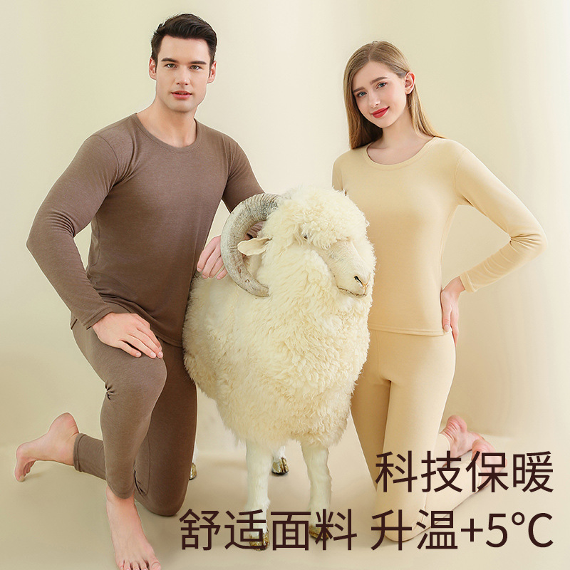 秋冬の新型男性女性のカシミヤ下着の薄い肌着カップルのカシミヤ保温下着セットの卸売り
