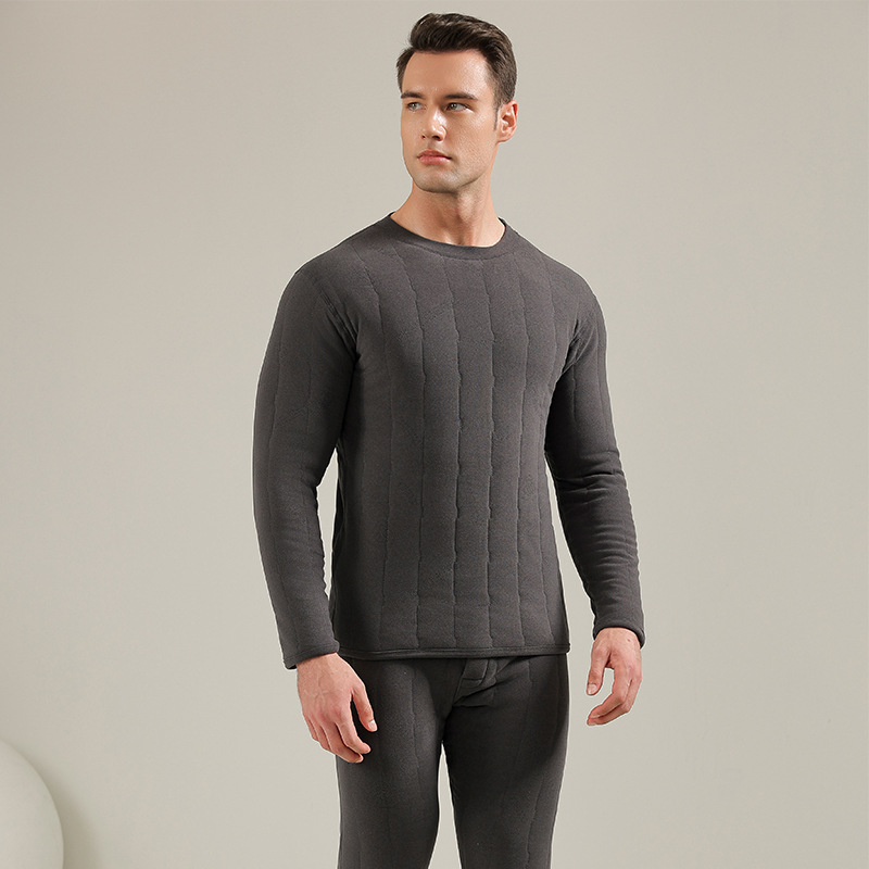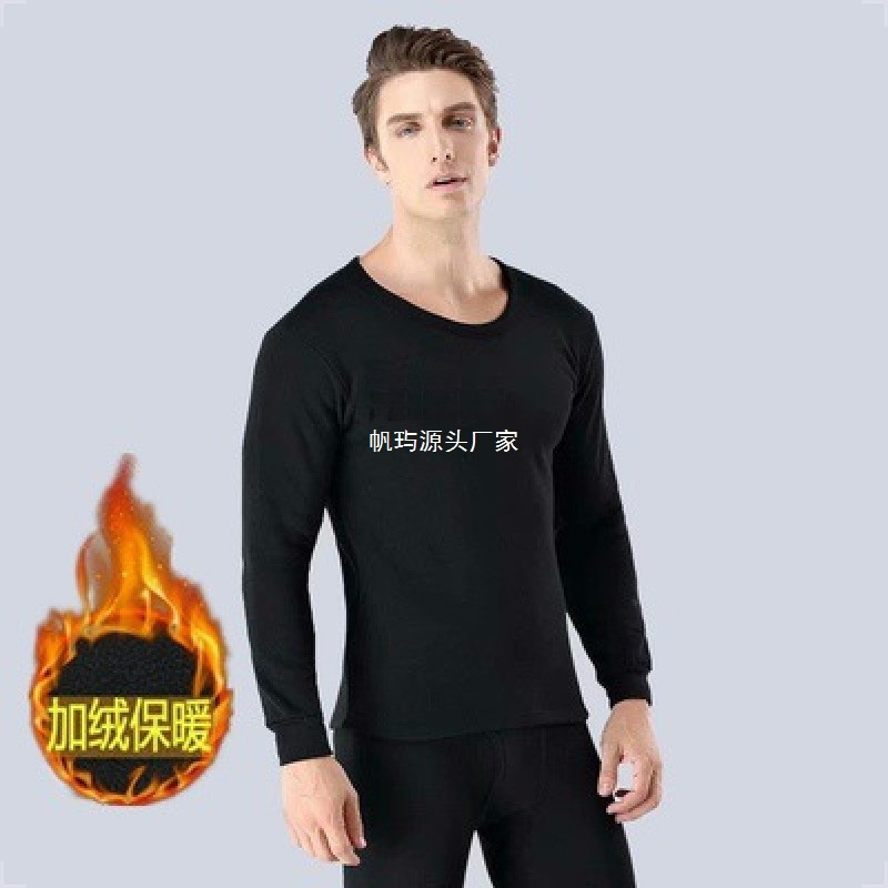 徳絨毛保温下着セット冬丸首ロックエッジ自慢両面磨毛底衣男性弾力秋衣秋ズボン