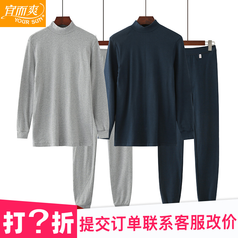 宜と爽秋冬下着薄純綿男性中襟保温秋衣秋ズボンセット綿シャツg 26/07n
