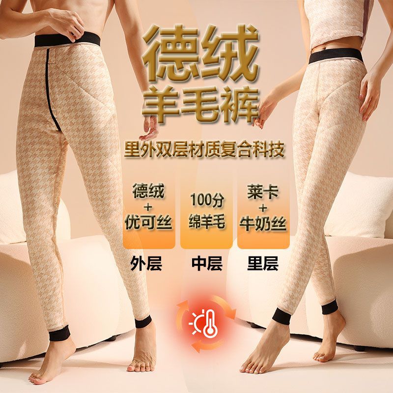 ウールのデコルテの秋のズボンの男性は秋冬のシルクのベルベットの保温ズボンの男性の高腰の底のズボンの女性の下着のカシミヤを厚くします。