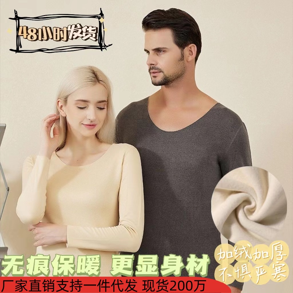 徳絨毛保温下着セット秋衣秋ズボン女性加毛男底シャツ男性女性下着は外着が厚くなる