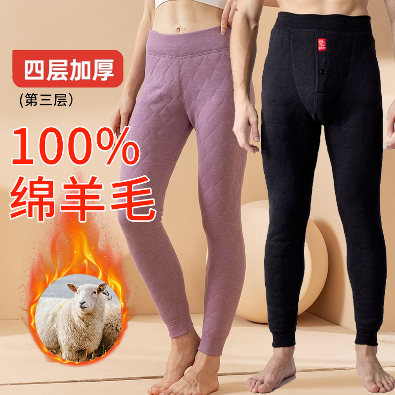 ブランドメンズ100%羊毛保温パンツ 冬用特大サイズ 厚手4層構造 ベースレイヤーパンツ 東北地方中高年向け綿パンツ