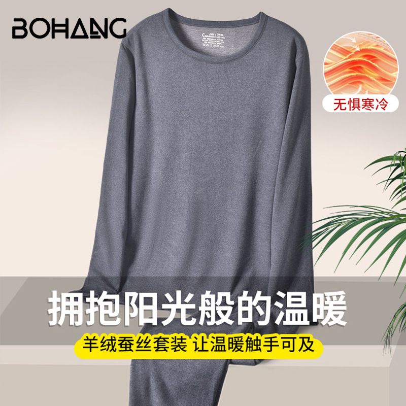 博航加绒メンズシルク保温下着秋冬カップル用ベースレイヤーダイヤモンドシルク秋服秋パンツセット