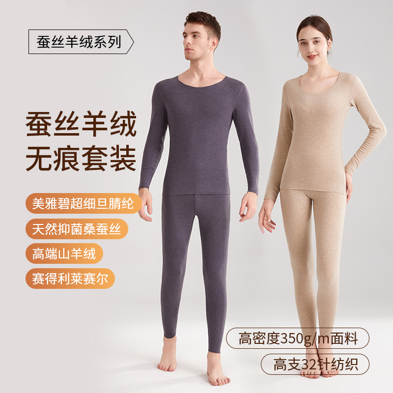 デロンシルクカシミヤ男女兼用保温下着7A抗菌シームレス秋服秋ズボンセット卸売防寒外着可能