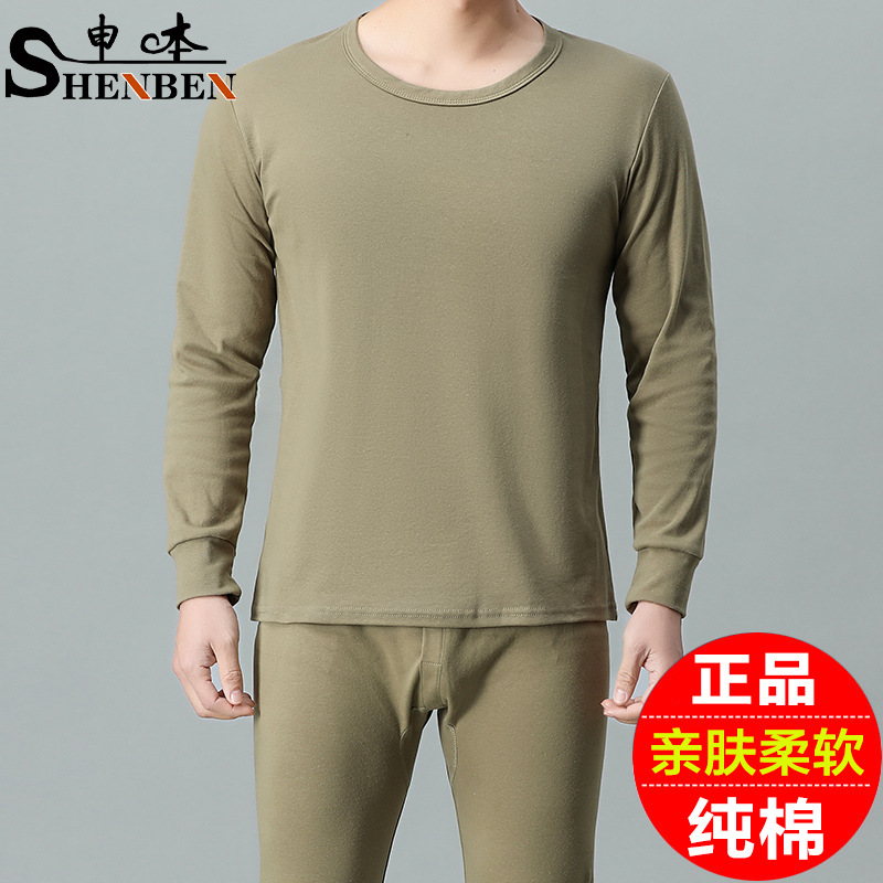 卸売り男性純綿春秋長袖丸首保温セット中年お父さん保温秋衣秋ズボン底シャツ
