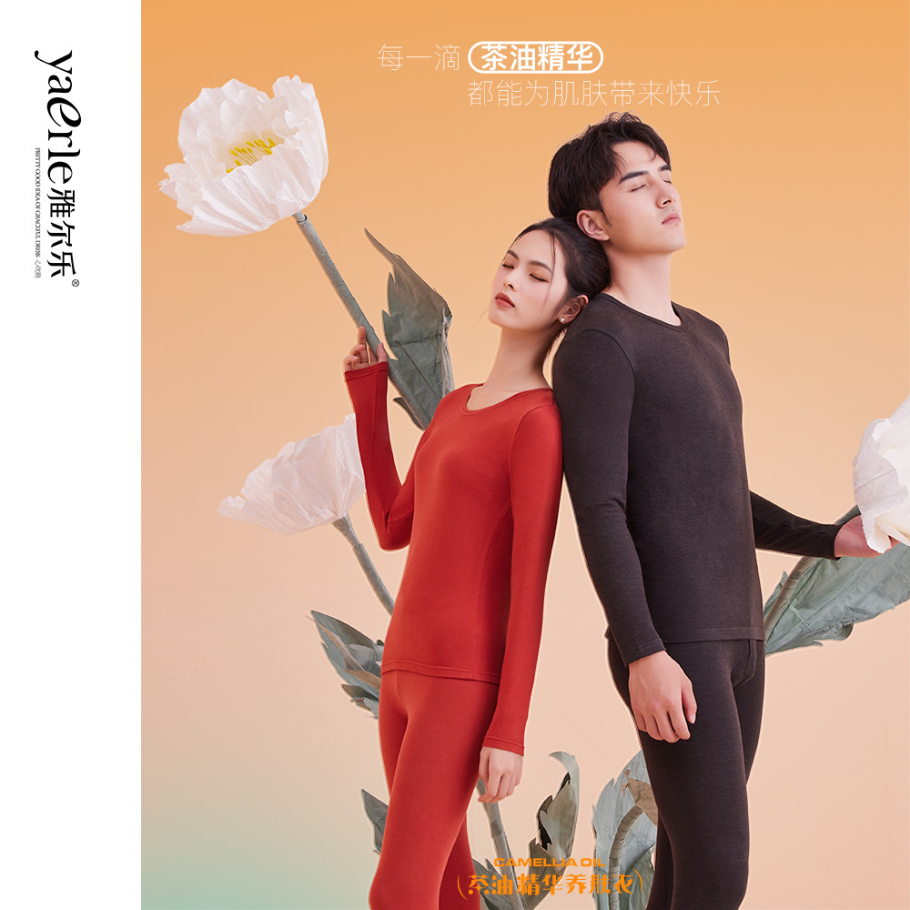 24年茶花油男女史美肌保温下着中厚磨毛秋衣秋ズボン発熱アクリル底セット