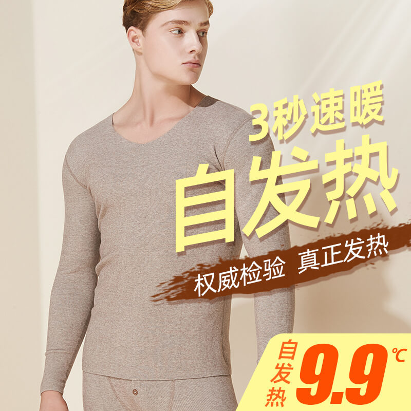 自己発熱両面徳絨毛無痕保温下着男性秋衣秋ズボンセット男性加毛増厚底冬