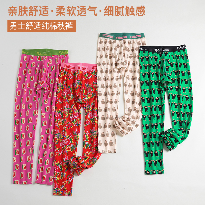 メーカー在庫卸売 秋冬メンズ保温下着 ストライプ柄プリント ユース向け防寒純綿秋ズボン 長ズボン