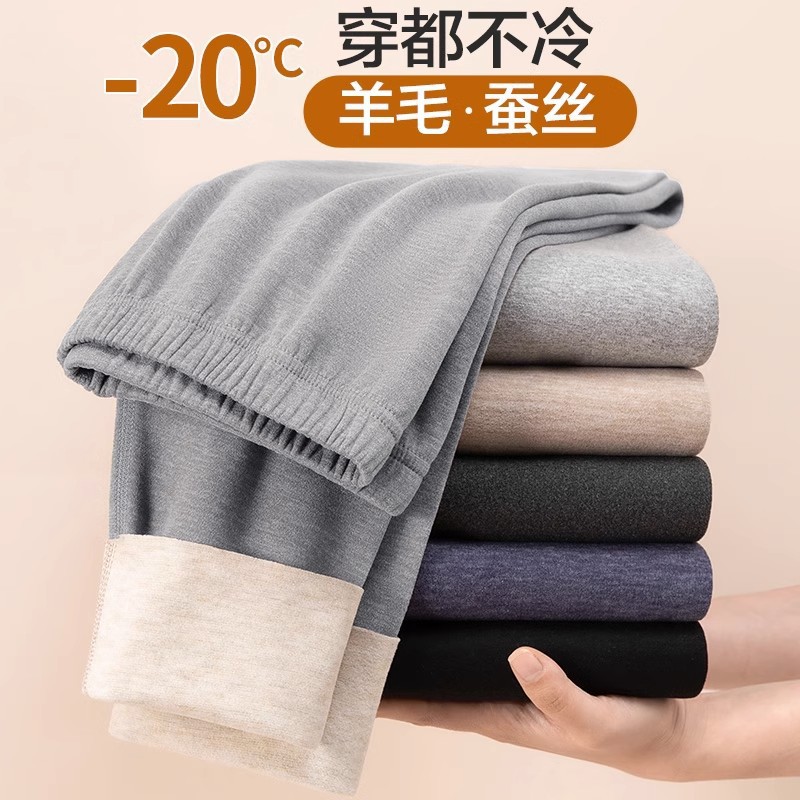 18058新型メンズ保温パンツ、ウールとシルクの厚手インナーレギンス、中高年男性用秋用パンツ、大きいサイズ