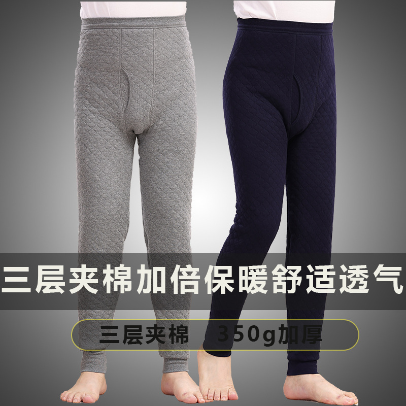 高齢者用保温下着 三層綿入り メンズ 大きいサイズ 長ズボン 厚手 パパ用 ハイウエスト レギンス 秋冬