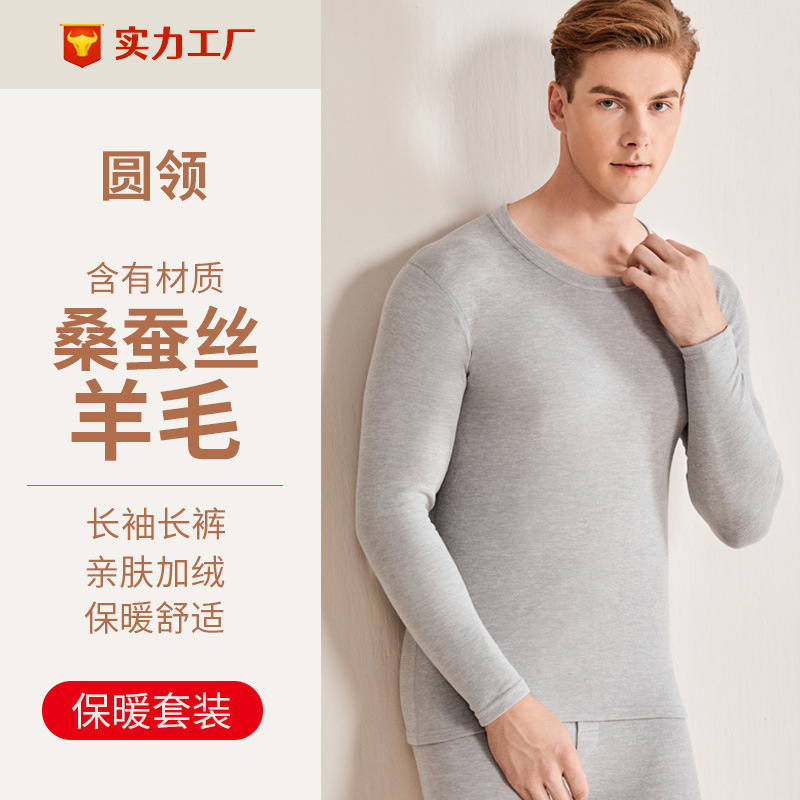 秋冬の新型ab面カシミヤシルク保温下着セット