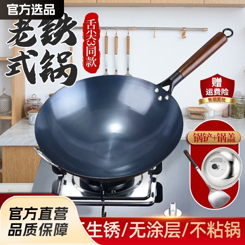 康バッハ鉄鍋家庭用炒め物無コーティング防錆鍋大容量炒め一体防粘無コーティング鉄鍋