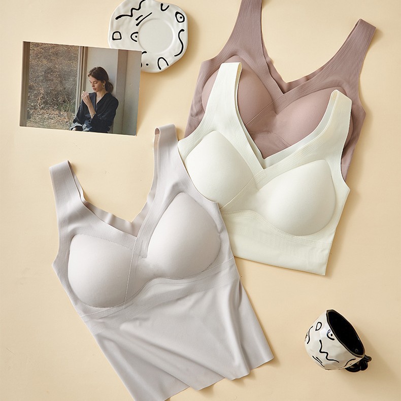 無痕下着女性一体ベストブラジャー夏の薄いタイプが集まって垂れ下がるのを防ぐ大きいサイズの美背ブラジャー