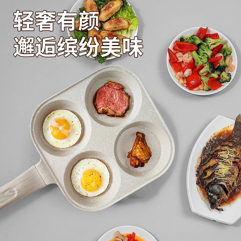 【源工場】外国貿易でよく売れている麦飯石四穴焼き卵三合一フライパンは朝食鍋にくっつかない