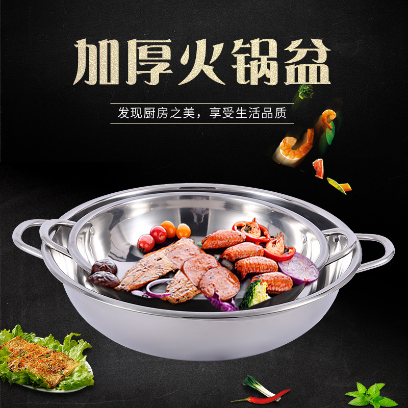 創發食品級火鍋専用鍋 ステンレス製鴛鴦鍋 汎用シングルボトム清湯鍋 中華風厚底しゃぶしゃぶ鍋