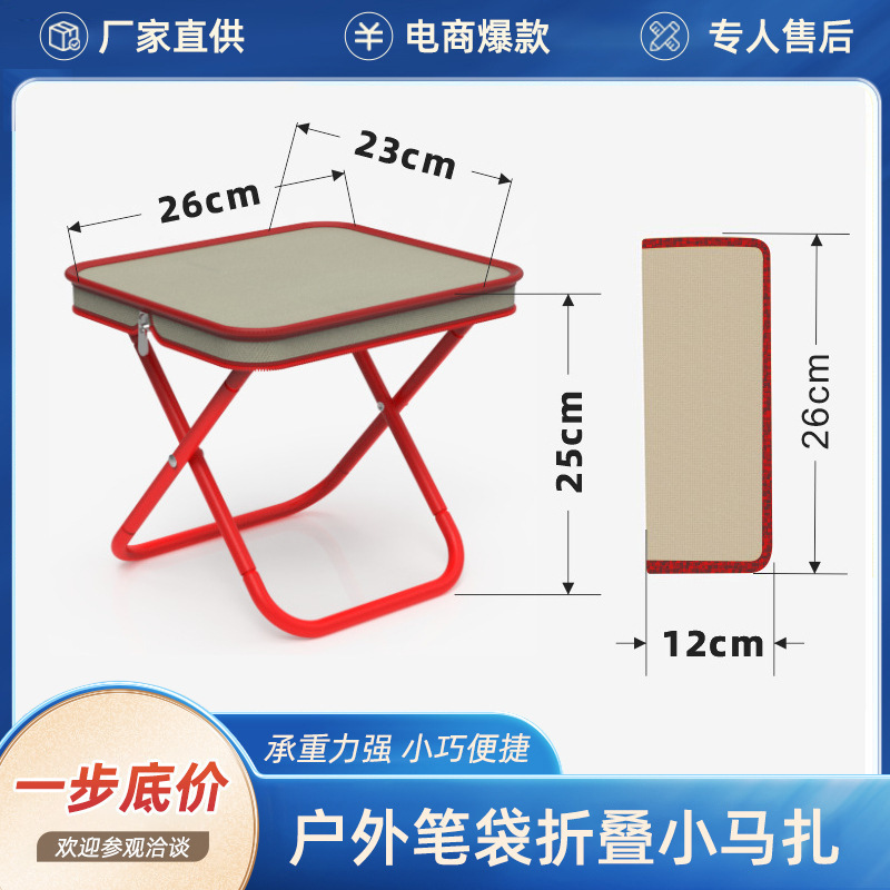 新しい折りたたみキャンプポニーポータブルハンドバッグスツール屋外小さなスツールキューピクニックスツールトレインスツール金属