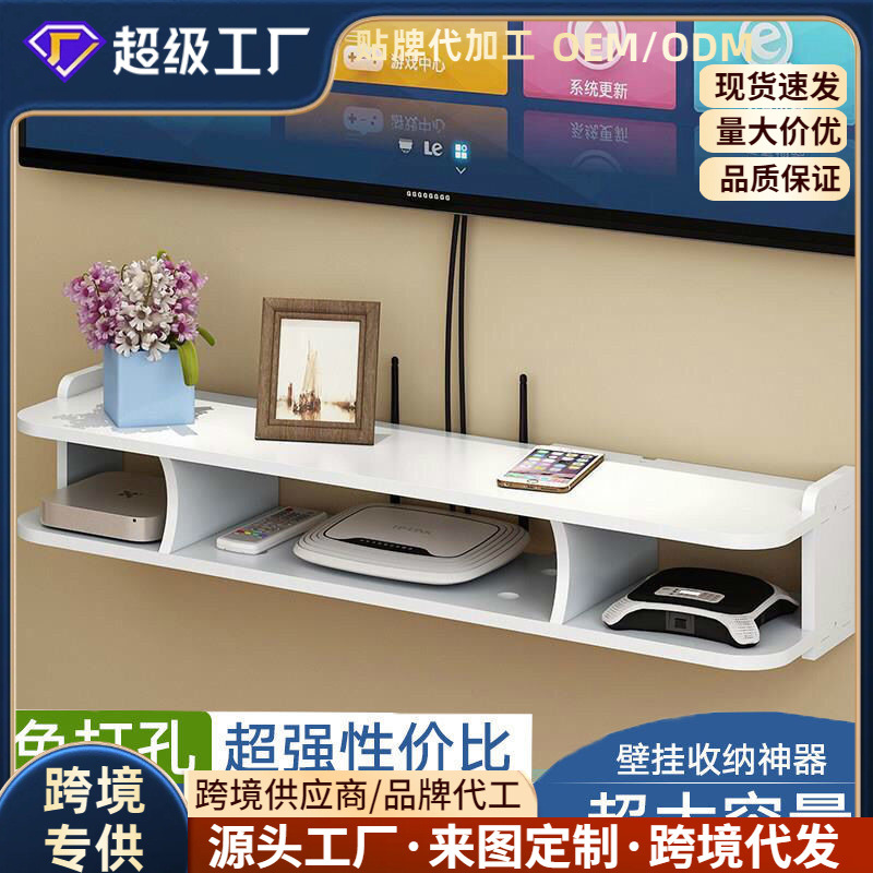 穴を開けないリビングルームのテレビの壁の上のセットトップボックスの棚のルータの収納箱の壁掛けの装飾の仕切り板の寝室