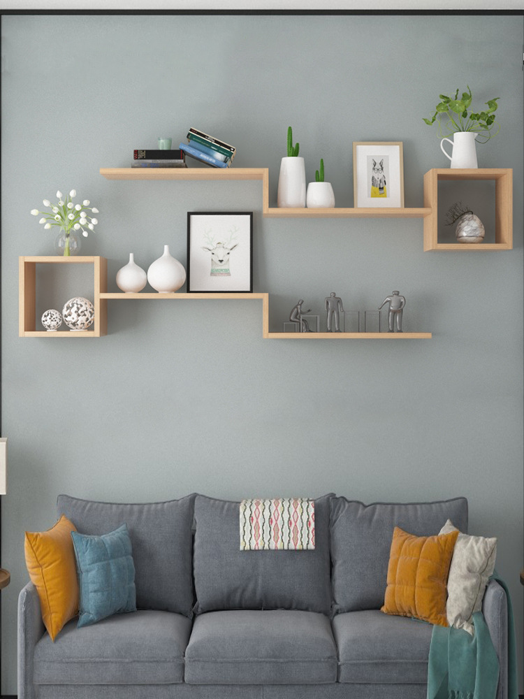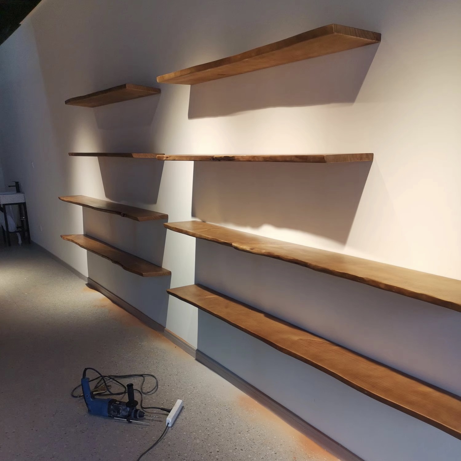X & 一字仕切り棚実木無痕本棚壁棚原木棚背景壁芸術靴バッグ壁掛け