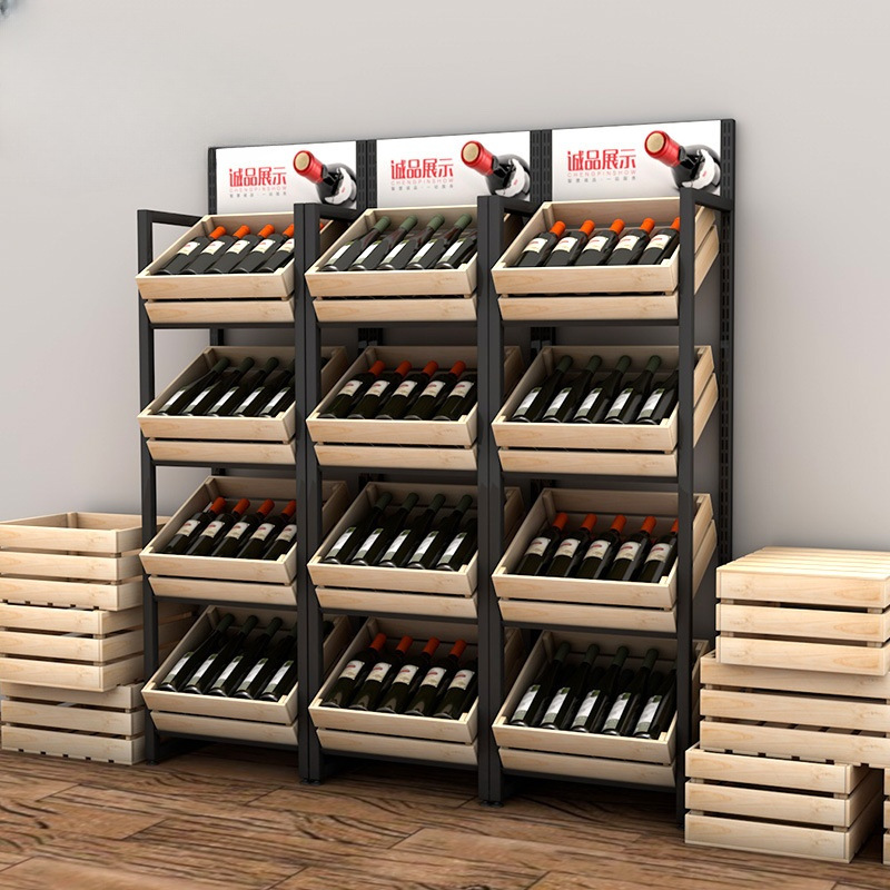X ^ x果物展示棚スーパー野菜棚果物屋果物野菜棚ワイン鋼木百果樹園多層実木枠