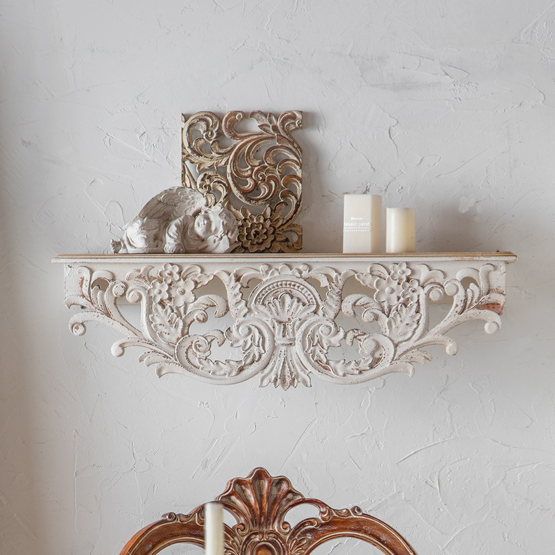アメリカのレトロな壁面の物置棚の実木の彫刻の壁の棚の客間の民宿は古い装飾棚の壁の置物の仕切り板をします。
