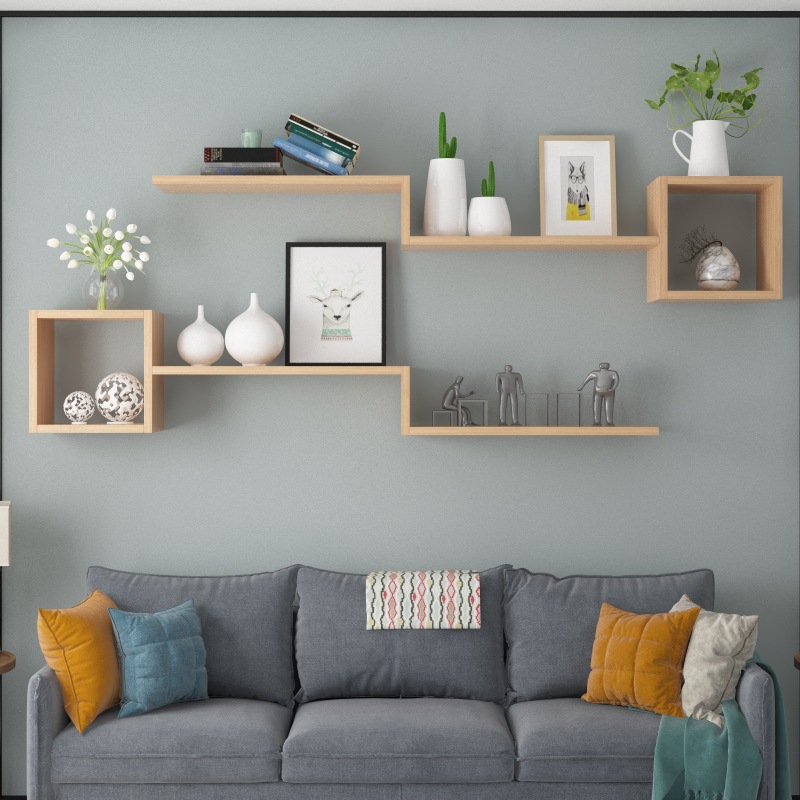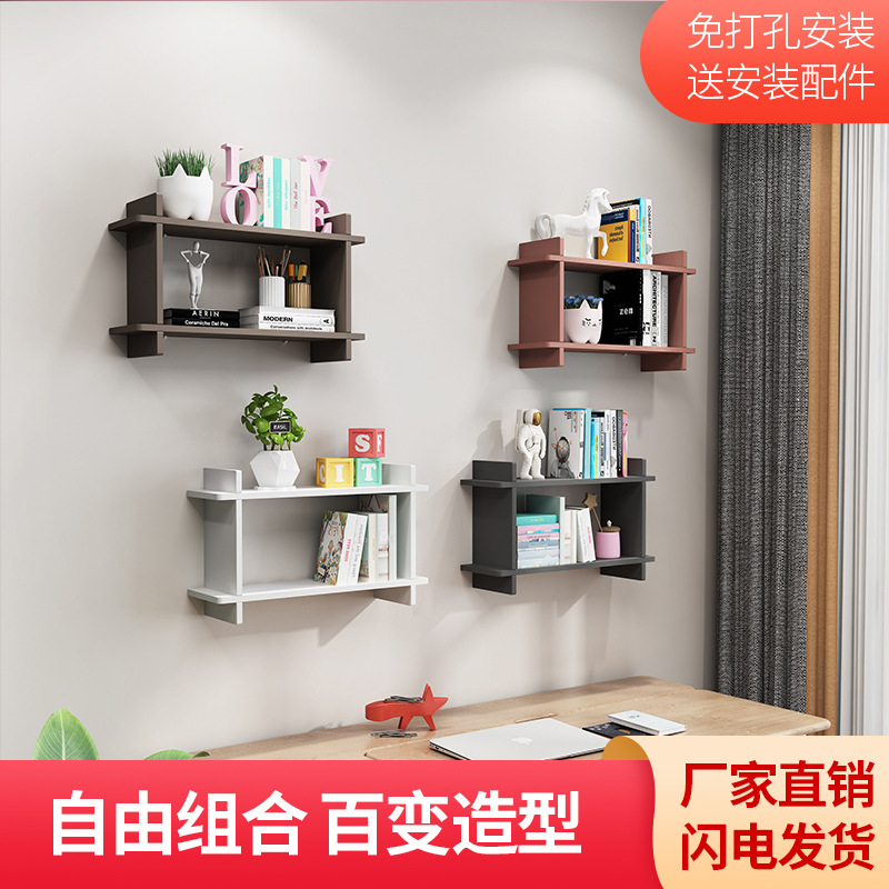 クロスボーダー卸売パンチフリー無垢材壁棚ワンラインパーティション壁掛け本棚壁掛け寝室装飾壁