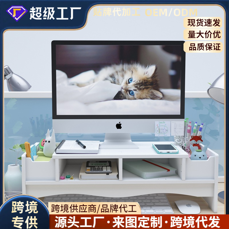 デスクトップコンピュータの高くなった棚のディスプレイは高架の事務のデスクトップの収納棚のスタンドを持ち上げて高く支えます。
