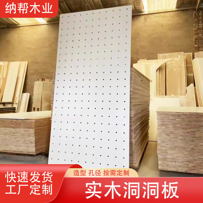 北欧風の実木の穴の板の物置棚の壁の装飾性の棚は穴の穴の板を開けないで展示棚を掛けます。