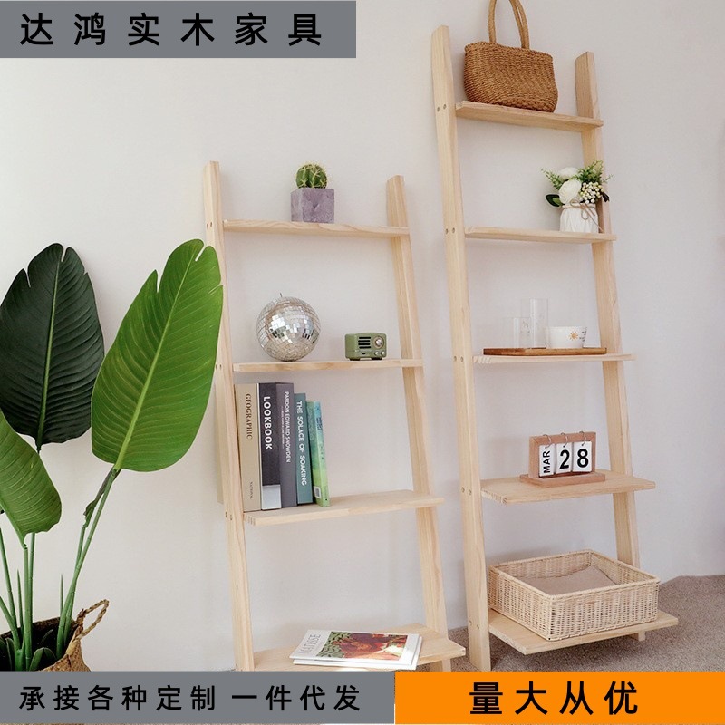 ins 台形収納ラック無垢材リビングルームコーナー収納ラック多層バルコニー花ラック北欧シンプルな床から天井までの本棚