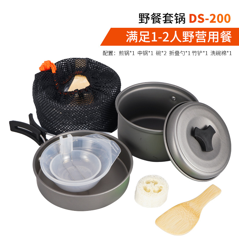 アウトドアキャンプポットセット DS-200 ポータブル食器 1-2人用 ハイキング用品 ストーブ ノンスティックポット バーベキューハンギングポット