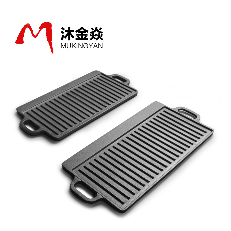長方形の鉄板焼き皿鋳鉄家庭用屋外焼き鍋ステーキタコ焼肉両面焼き皿を提供します。