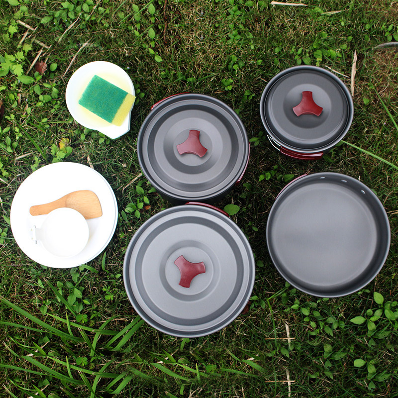 新型屋外キャンプセット鍋調理器具ピクニック鍋セット鍋携帯アルミナ断熱セット鍋2-3人用